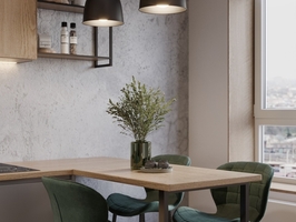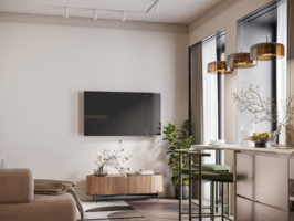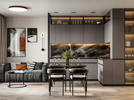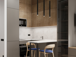 Дизайн-проект квартиры для семьи из 2 человек Стиль: Минимализм+скандинавский Срок: 1,5 месяца Задача: Разработать дизайн квартиры в стиле ярком и необычном стиле. Нужна кухня-гостиная с небольшим рабочим местом. На кухне предусмотреть барную зону и хранение