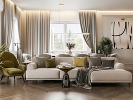 Данный дизайн-проект предлагает свежий взгляд на современную роскошь, где легкость и функциональность сочетаются с классическими элементами и дорогими материалами. Концепция строится на открытости пространства и изобилии естественного и искусственного