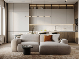 Квартира для семьи из 2 человек Срок разработки: 2 месяца Задача: Необходим дизайн-проект таунхауса в минималистичном стиле. Нравятся светлые, легкие интерьеры в пастельных оттенках с элементами дерева. Хочется общую кухню-гостиную с островом и обеденным