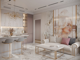 Нашей студией был разработан утонченный проект в стиле "Неоклассика" для молодой пары с изысканным вкусом. Были использованы  сочетания премиальных материалов, таких как шпон, мрамор, паркетная доска, изысканная лепнина. В этом проекте также много сложных