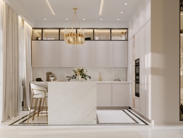 Проект квартиры для семьи из 2 человек Стиль: Неоклассика Срок разработки: 1,5 месяца Задача: Разработать дизайн квартиры в стиле неоклассика. Нравятся светлые оттенки, молдинги, лепнина, зеркала, глянцевые элементы. В мастер спальне хочется мягкое изголовье